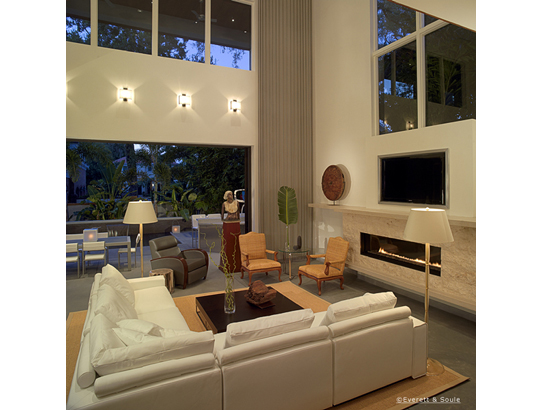 Brilliantly designed and flawlessly built, this 4000 sq.ft. Contemporary home contains an abundance of unique and sophisticated architectural features. The main focus of the two-story Great Room is a 12’ wide modern, linear fireplace with asymmetrical concrete hearth and mantel. The fireplace surround (clad in split-faced stone), mantel and hearth are entirely cantilevered from the wall beneath a huge 8’ wide by 12’ high window.