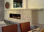Brilliantly designed and flawlessly built, this 4000 sq.ft. Contemporary home contains an abundance of unique and sophisticated architectural features. The main focus of the two-story Great Room is a 12’ wide modern, linear fireplace with asymmetrical concrete hearth and mantel. The fireplace surround (clad in split-faced stone), mantel and hearth are entirely cantilevered from the wall beneath a huge 8’ wide by 12’ high window.