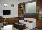 Brilliantly designed and flawlessly built, this 4000 sq.ft. Contemporary home contains an abundance of unique and sophisticated architectural features. The main focus of the two-story Great Room is a 12’ wide modern, linear fireplace with asymmetrical concrete hearth and mantel. The fireplace surround (clad in split-faced stone), mantel and hearth are entirely cantilevered from the wall beneath a huge 8’ wide by 12’ high window.